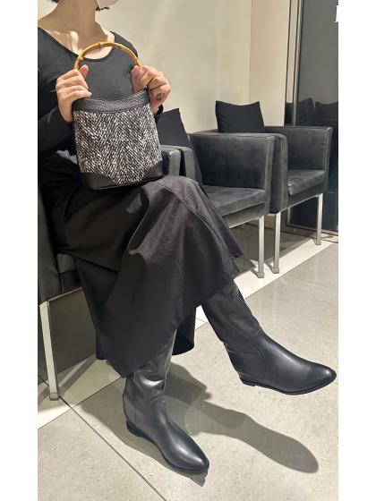 フラットに見えて40mmのインヒールが入ったバックジップのロングブーツ。