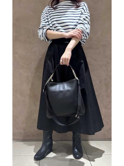 シンプルながらも、シルエットやカッティングでフェミニンな雰囲気に仕上げました。