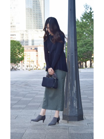 細身の木型を使用したシンプルな晴雨兼用ブーティ。サイドの切り替えデザインでほんのり表情を持たせました。<SLENDER/AQUA BELL>