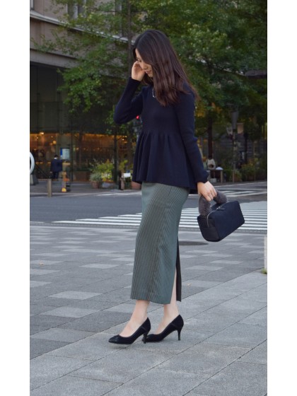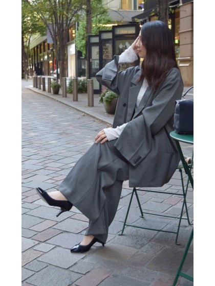 細身の木型を使用したコンビネーションパンプス。質感の異なる3種類の素材をトーンオントーンで組み合わせたさり気ないミックス感を楽しめます。<SLENDER/AQUA BELL>