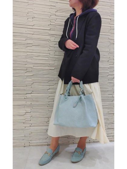やや深めのアッパーにスッキリとしたキレイめビットを合わせて洗練された印象に。