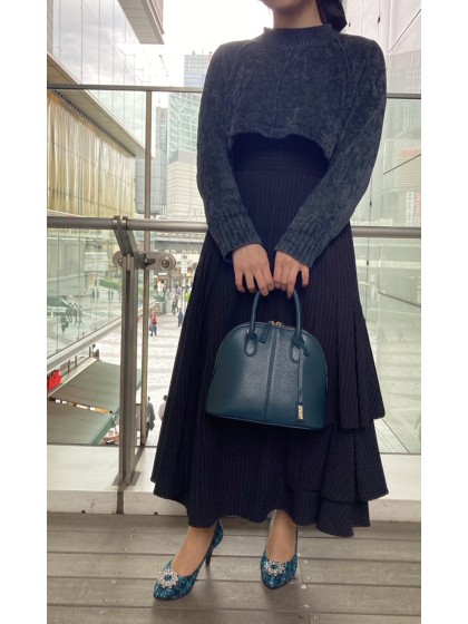 小さめのブガッティ型は、キレイめにもカジュアルにも合わせやすいのが◎。