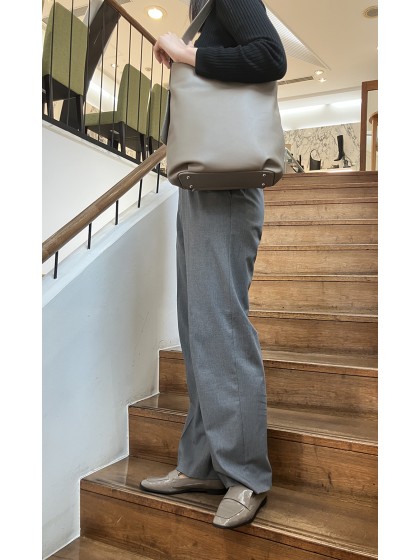 透明感のある染色をしているため、革本来のナチュラルな風合いが豊かな表面感を生んでいて、大きめのサイズ感こそしなやかなレザーの良さと表情が伝わるアイテムです。