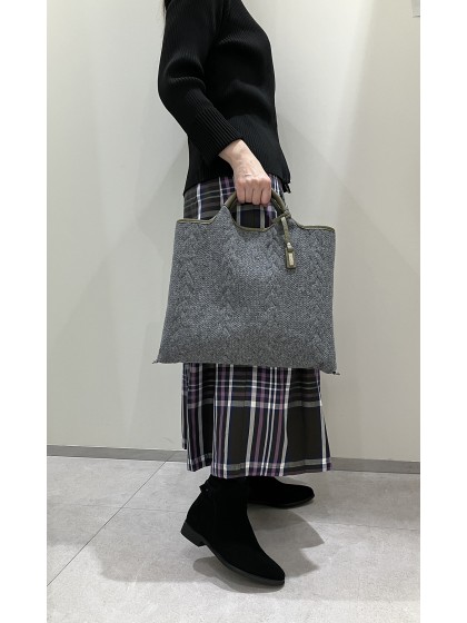 ニットの網目がシーズンムードを盛り上げるハンドバッグ。