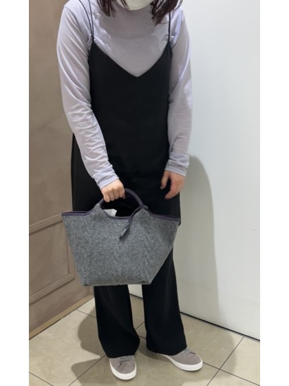 ニットの網目がシーズンムードを盛り上げるハンドバッグ。