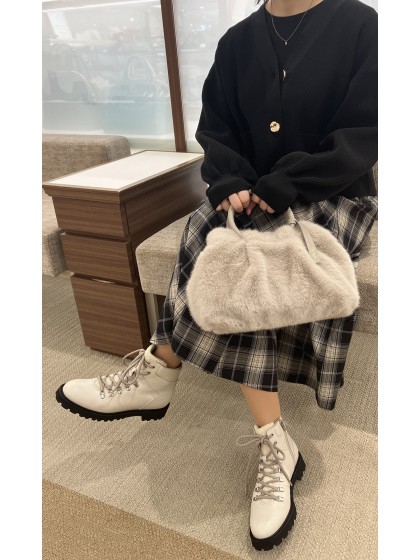 コロンとした丸みのあるフォルムが愛らしいエコファーバッグ。
