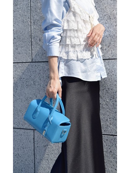 イタリアの型押しレザーを使用した長方形フォルムのショルダーバッグ。取り外しのできるショルダー紐が付属した2Way仕様です。