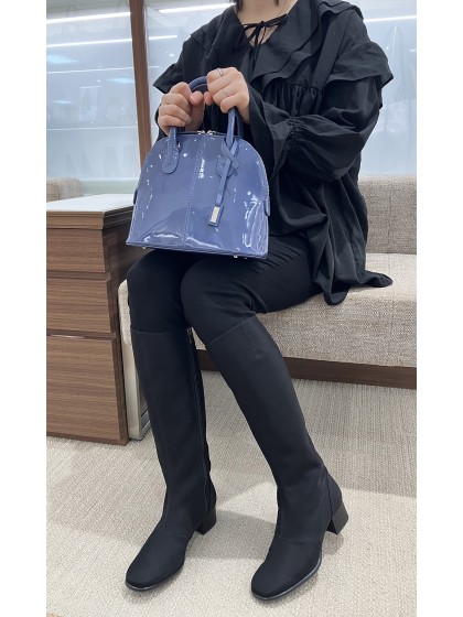 エナメルレザーを使用したショルダーバッグ。
