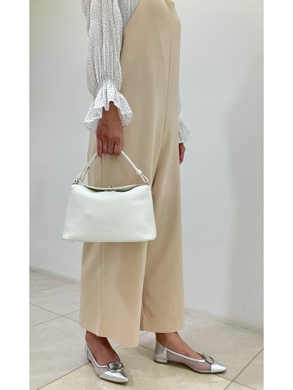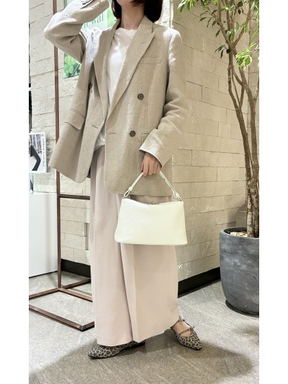 イタリア産のシュリンク型押しレザーと丸みのある程よいボリューム感がかわいいターンロック金具を使用した新シリーズバッグ。