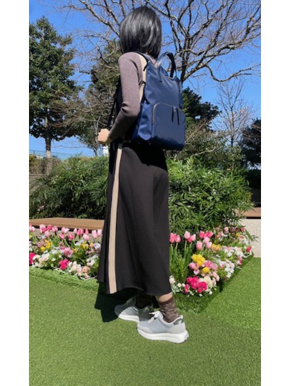 リュックでもカジュアル過ぎず、フェミニンなコーディネートにも◎なアイテムです。