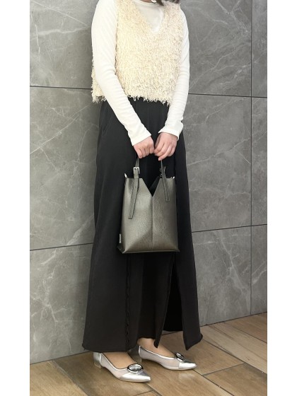 口元のV字が特徴のミニマルでクールな雰囲気を持つNEWシリーズバッグ。