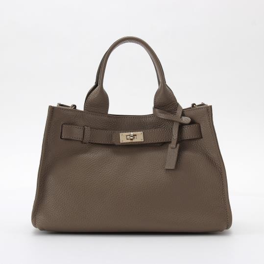 トレンドのターンロックベルトデザインが目を引く大容量サイズのハンドバッグ。