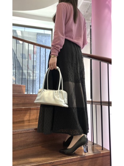 トレンドの横長×ロングハンドルのフォルムをややカーヴィなラインと大きく入れたダーツで立体的にこなしたボストンバッグ。