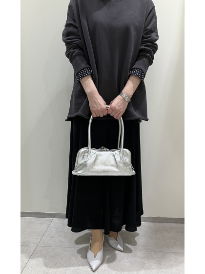 トレンドの横長×ロングハンドルのフォルムをややカーヴィなラインと大きく入れたダーツで立体的にこなしたボストンバッグ。