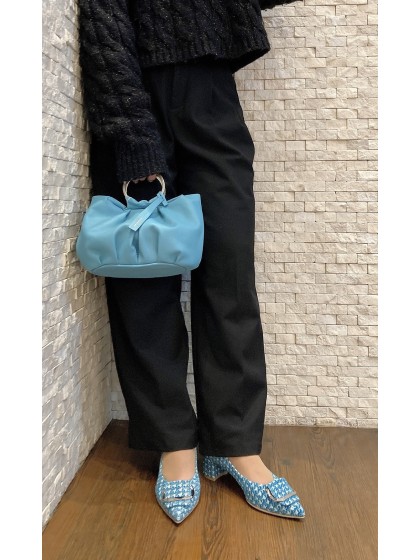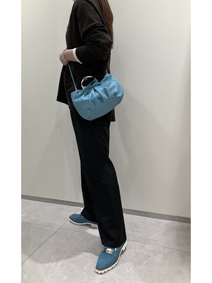 ミニリングハンドルとふんわりソフトなギャザーがポイントのコンパクトバッグ。